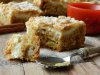Mixam intr-un vas untul moale cu zaharul, ouale, zaharul vanilat, uleiul si un praf de sare. Adaugam faina amestecata cu praful de copt, bicarbonatul si scortisoara. Curatam merele, le tocam...
