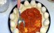Se desface bulionul in apa si se amesteca cu condimentele pentru pizza si cu putina sare. Cele 4 felii (de preferat paine mai veche ) se taie cuburi si se dau rapid prin sosul de rosii. Se asaza frumos pe fundul vasului termorezistent uns cu putin ulei si tapetat cu faina. Deasupra se toarna...