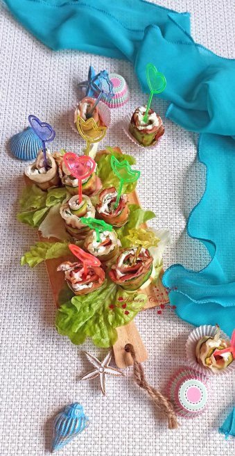 Aperitiv trandafiri din zucchini si bacon cu crema de branza