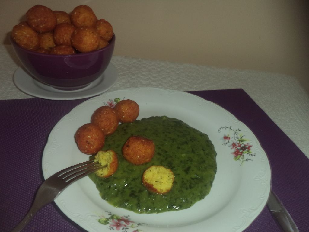 Bulete cu sos de spanac si lapte