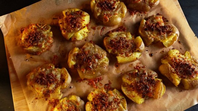 Cartofi zdrobiți, cu mozzarella - Rețeta simplă și savuroasă