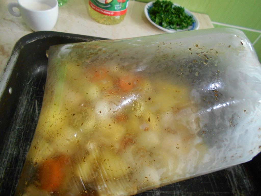 Garnitura de legume la punga, cu sos de usturoi