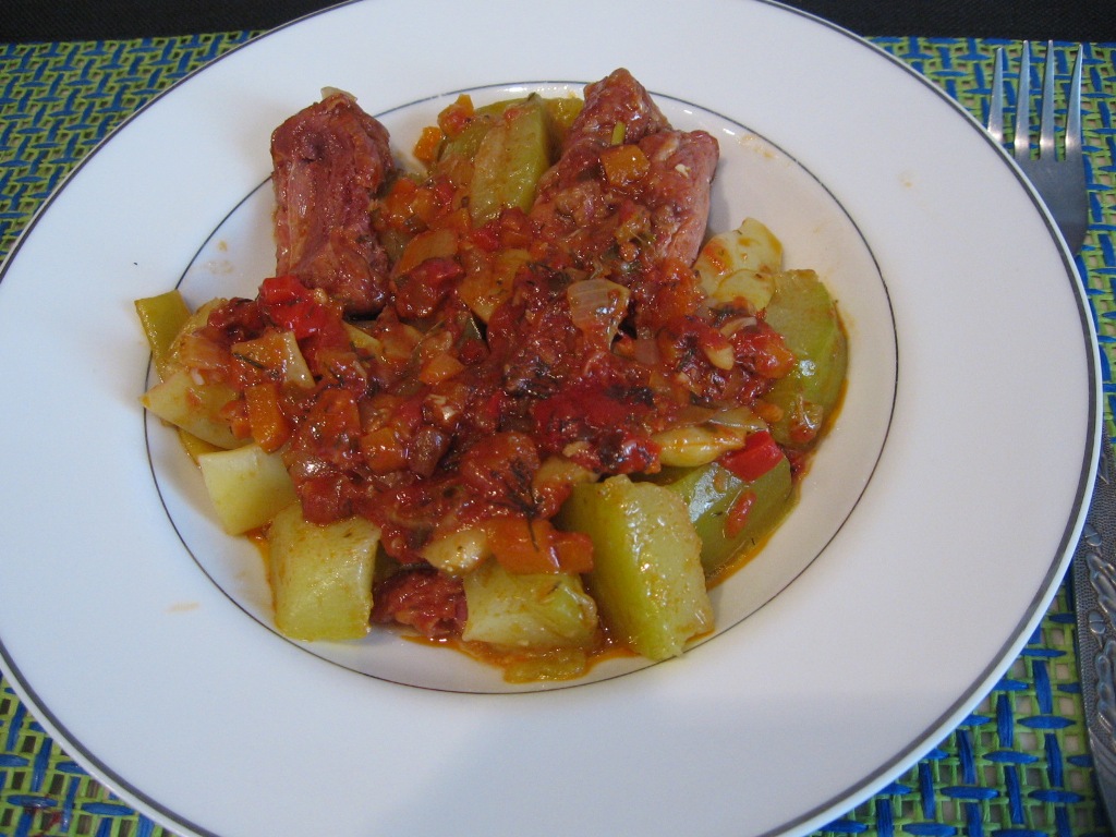 Tocanita de dovlecel si fasole verde, cu costita afumata