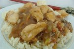 Intr-un bol se amesteca supa de pui,amidonul,zaharul,sosul de soia,otetul si ghimbirul. Puiul se taie de marimea unei imbucaturi. Intr-un wok se pune uleiul si cand s-a infierbantat bine de tot se adauga ceapa verde,usturoiul si ardeiul iute si se prajeste 2 minute. Se adauga pieptul de...