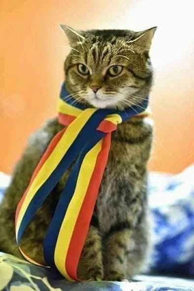 Eu zic că și mâțunea asta este tot româncuță, de vreme ce și-a pus tricolorul, taman de 1 Decembrie...