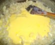 Am pus laptele la fiert cu scortisoara si 3 linguri da zahar. Cand laptele fierbe turnam pastele si le lasam la foc potrivit sa fiarba, approx 15 min ( amestecam din cand in cand ). Apoi oprim focul si scoatem batonul de scortisoara. Intre timp aprindem focul la aragaz. Galbenusurile se mixeaza cu 4 linguri zahar, pana isi maresc volumul si se deschid la culoare. Albusurile cu praf sare se mixeaza, adaugand treptat restul de zahar, pana acesta se topeste. Amestecul de galbenusuri se incorporeaza cu ajutorul unei spatule in pastele cu lapte, apoi amestecul de albusuri. Compozitia formata se toarna intr-o forma rotunda tapetata cu hartie de copt si se introduce la cuptorul preincalzit, approx 25 min. Intre timp am preparat bezeaua: albusurile spuma cu un praf sare si otet si adaugam treptat zaharul pana obtinem o compozitie lucioasa si tare. Dupa ce scoatem tava din cuptor, ornam pe deasupra bezeaua. Reintroduc la cuptor cam 5 min, apoi am stins focul, am intredeschis cuptorul si am lasat sa se raceasca.