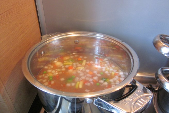 Carnea macra de vacuta se taie patratele, se pune la fiert cu ceapa in apa cu putina sare, la oala minune, cca. o ora. Dupa ce s/a fiert carnea se adauga legumele asortate, foile de dafin, ardeiul tocat marunt, sosul de rosii, se asezoneaza de sare, piper si se mai lasa la fiert, la foc potrivit, cca. 30 de minute. Se serveste fierbinte cu o lingura de smantana.