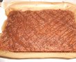 Tapetam cu hartie de copt o tava cu dimensiunile de 23/36 cm, turnam compozitia in tava si dam tava la cuptorul preincalzit. cand este aproape gata scoatem tava din cuptor si intindem deasupra gemul amestecat cu nuca macinata, nivelam si deasupra presaram zahar tos, dam din nou la cuptor cca 15 min, facem testul scobitorii.